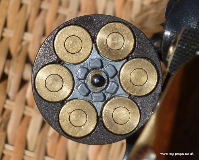 Chamber up your six shot shots, take a shot with a bang ! ! and some smoke and sparks straight out the barrel.. great effect ! ! We ship Internationally, please ask for shipping quote : sales@mg-props.co.uk