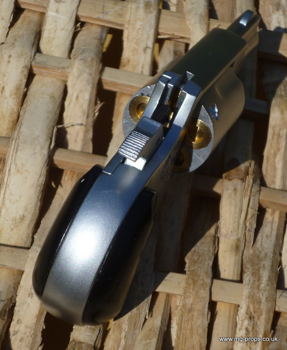 Brand new boxed with 5 YT firing cartridges (to fire / make a bang requires 5mm PFC primer caps) Caliber: YT .22 Weight: 185g (loaded) Length: 100mm Type of action: 5 Shot Single Action Materials: Metal Power: 5mm PFC Cap Vents from chamber Available in Black or Silver International shipping, please ask for shipping quote: sales@mg-props.co.uk PFC Primer caps: £9.50 per box (1 box = 100 PFC caps) These are what makes the bang and smoke