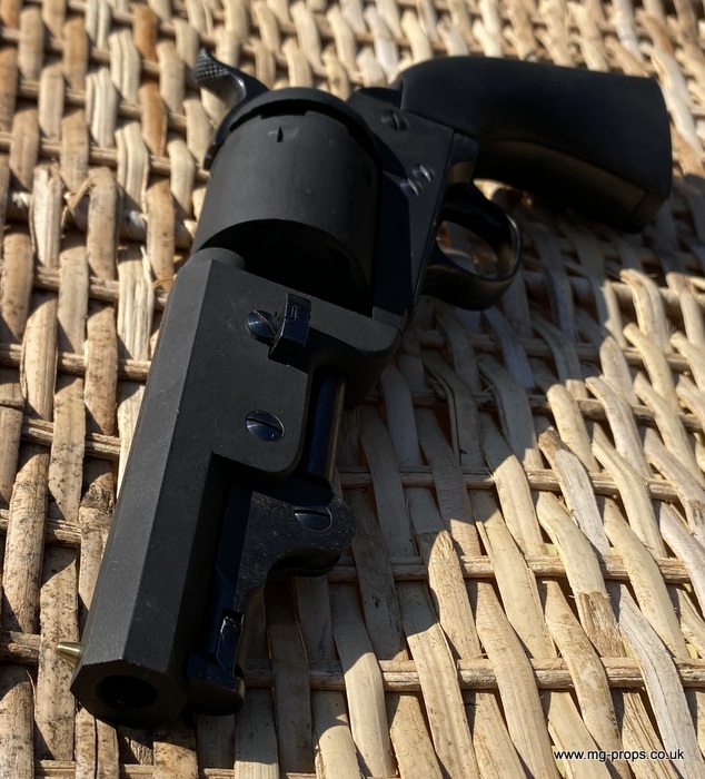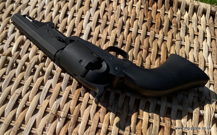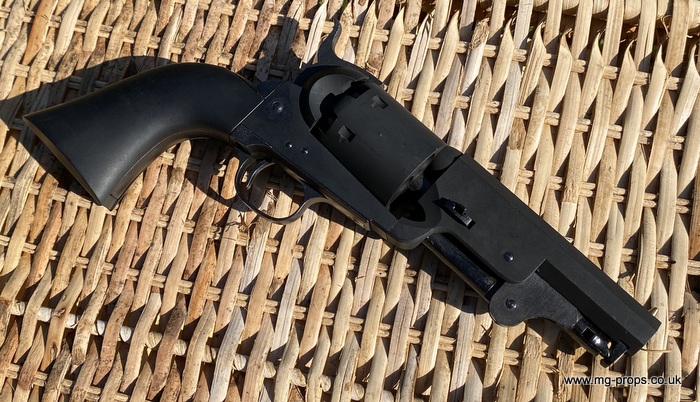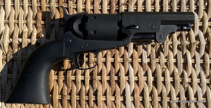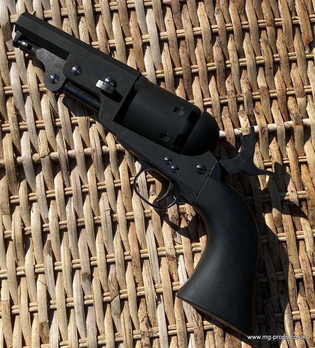 This is a superb replica of the Colt Navy 4in Barrel Version Made from heavyweight abs & zinc alloy parts has a metal look and cold to the touch. Weight: 655g Barrel Length : 4in Very nice weight, feel and action No visible makers name Functions, Fires, Field-strips like the real thing ! In very good condition / un-fired Rare chance to purchase this superb replica which is no longer produced Includes original box, original instructions, 1 nipple removal wrench. 12 percussion containers for which a 5mm cap fits in (for a loud bang!) PFC caps not included. Open Barrel for venting Strips down like the real thing ! UK Customers: This is VCRA Exempt. Just need to be over 18yrs old to purchase We ship internationally. Any questions please let us know: sales@mg-props.co.uk PFC Primer caps: £9.50 per box (1 box = 100 PFC caps) These are needed to make the bang and smoke! Brief info on the COLT 51Navy Colt Model 1851 Navy Revolver In 1850, Colt began manufacturing a .36 caliber, 6-shot revolver that would continue to be produced for the next twenty-three years - the Colt Model 1851 Navy Revolver. During that span, 215, 348 pistols were produced in Hartford, Connecticut and 42,000 were produced in London, England, a total production of more than a quarter of a million revolvers!. This model was carried by Robert E. Lee as the Confederate Commanding General. Colt Navy Revolvers were the favourite sidearms of dozens of historical figures during it's production life, including John Singleton Mosby, Wild Bill Hichcock as the Sheriff of Abilene and Buffalo Bill Cody. Numerous variations of the Navy revolver exist, and most of today's reproductions copy the design of the Second and Third Model Colt Navy Revolver. The second Model had a small, round trigger guard, and the third had a larger round trigger guard.