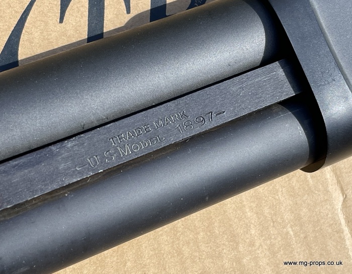 Rare Full Set Version includes: Tanaka Works M1897 Bayonet, M1897 Leather Carry Sling, 1x Box(6) 12G Firing Cartridges (reusable), Tactical Gun Belt (holds 12 rounds), Tactical Butt-Stock Holder (Holds 5 rounds) Also includes original box and original instructions. All items in excellent condition! Made in the 1990's and practically in new condition / unused / unfired. Photos above of actual M1897 Full Set for sale. Just one available....Be quick! The Tanaka M1897 functions and field-strips like the real U.S. M1897, with genuine wood stock and fore-grip and bayonet fixing Construction: Real wood stock, fore-grip, Heavyweight abs and metal parts Field strippable Weight Approx: 2.6Kg Length: 39 Inches Barrel Length: 19 1/2 Inches Open Barrel for venting Capacity: 6 Cartridge Power: 2x 7mm PFC primer caps We ship internationally, any questions please fire away ! : sales@mg-props.co.uk