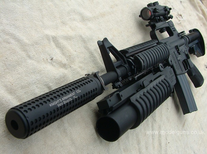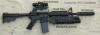 with M203 launcher, scope, bipod sights, etc..