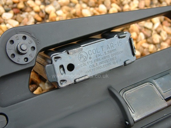 Pre-built / modified / tuned Marushin Colt M16A1 ready to use straight out the box. This Official COLT blowback replica functions, fires, fieldstrips exactly like the real thing with over 170 parts. Highly detailed and weighs about the same as the original. All correct markings (Colt markings and logos) and is virtually indistinguishable from the real thing. The M16A1 is brand new with original box / instructions and ready use straight out the box: Includes: Original box/instruction, 5x 5.56mm blowback cartridges (reusable), 20rd steel magazines (with Colt markings on the base plate). Carried bolt can be blued (as seen above) free of charge This replica is engineered precisely like the original, and also operates like the original in every way, such as loading, chambering and ejection of rounds (5 included / more available), magazine loading and removal, stock aperture (for holding cleaning kit), movable forward assist, sights, semi/ full auto and safety selector. Can be field striped EXACTLY like the original. It lock, loads, cocks, fires and ejects (see video above). This is a full size 1:1 metal version. Ideal for the collector, museum or training/ instruction purposes. Like the original also FIRES on Semi and Full auto. See videos above. There are over 170 parts, only the stock and hand grip are of abs, everything else is metal construction. Like the original, the M16 can be fired either on semi or full automatic. The effect is a real simulation of the M16 in action. The cartridges takes two PFC caps which produces the blowback action, bang, smoke and ejects the shell(s). In real time this all happens very quickly and a full magazine can be discharged in the same time as the real M16. Its a fantastic effect. Even without the PFC caps you can load, chamber manually eject a `spent` round out the ejection port. Take a look at the short video clip above to see one in action. Functions and Features: