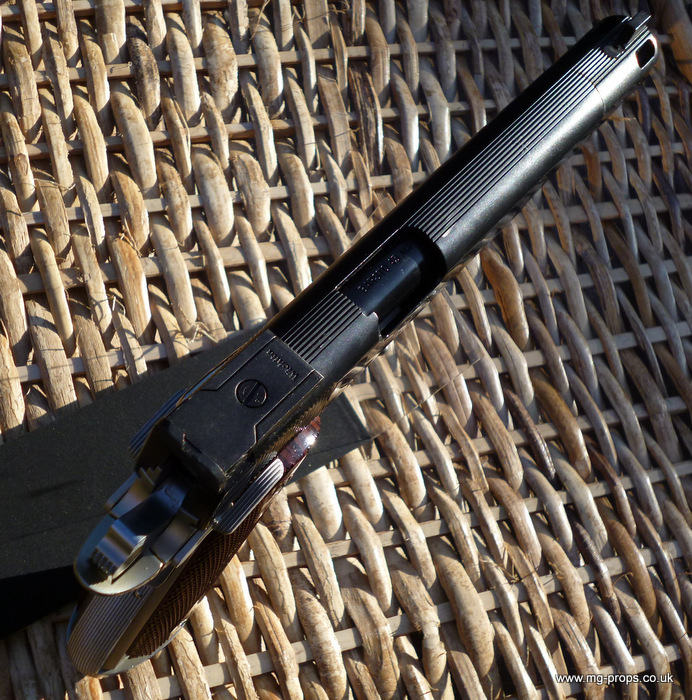 In good condition, a few slight minor scuff marks (please see photos above) Silver frame with black slide, nicely detailed like the original (see photos above) Includes: 5x MGC .45ACP blowback cartridges. No original box.