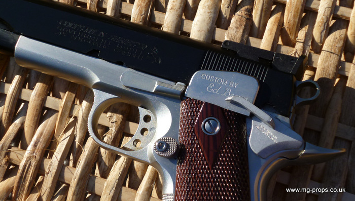 .45ACP Real Look Blowback cartridges: €28.95 / £21.95 Eight real look / size .45ACP blowback cartridges that can be fired in your 1911 Colt Look like real bullets with .45ACP markings (great for display) but can also be fired in most .45ACP model guns (use 7mm PFC cap) .45ACPmm Real Look `Dummy` Bullets: €28.95 / £21.95 Eight real look / size .45ACP Dummy bullets Look like real bullets with .45ACP markings (great for display) .45ACP Real Look Blowback cartridges: €28.95 / £21.95 Eight real look / size .45ACP blowback cartridges that can be fired in your 1911 Colt Dummy Bullets `Firing Pin`: €18.85 / £12.95 Using this firing pin allows you to cycle the real look dummy bullets Ammo Box: €11.85 / £8.50 Plastic container for .45ACP & 10mm rounds (real looks or blowback) Keep your ammo neatly stored Real Gun Grips: €39.45 / £31.95 Pachmayr wrap round real gun grips: Pearl Grips: €39.95 / £31.95 Pearl style 1911 grips Wood grips: €34.75 / £23.95 1911 wood grip metal Colt logo (also available without Colt logo) : Diamond check (Diamond and checker 1911 grips available )